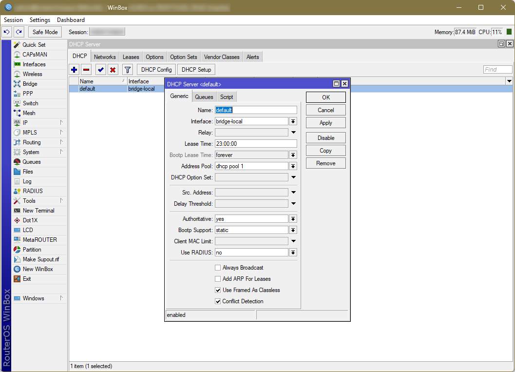เปิด Winbox หรือเรียกเข้าหน้าผู้ดูแลของ Mikrotik ผ่านเว็บเบราเซอร์. บทความนี้จะเว้นวิธีทำ DHCP server หลักหรืออันแรก ซึ่งสมมุติว่าคุณผู้อ่านมีอยู่แล้ว และมันก็ทำได้ง่ายมาก จึงจะขอเว้นไว้ ณ ที่นี้.