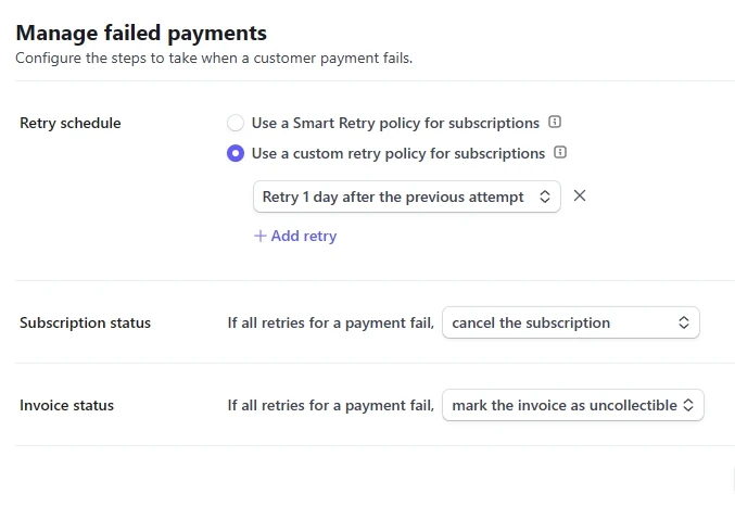 1. https://stackoverflow.com/questions/77981419/how-to-void-a-invoice-automatically-in-stripe-after-automated-retries-have-faile