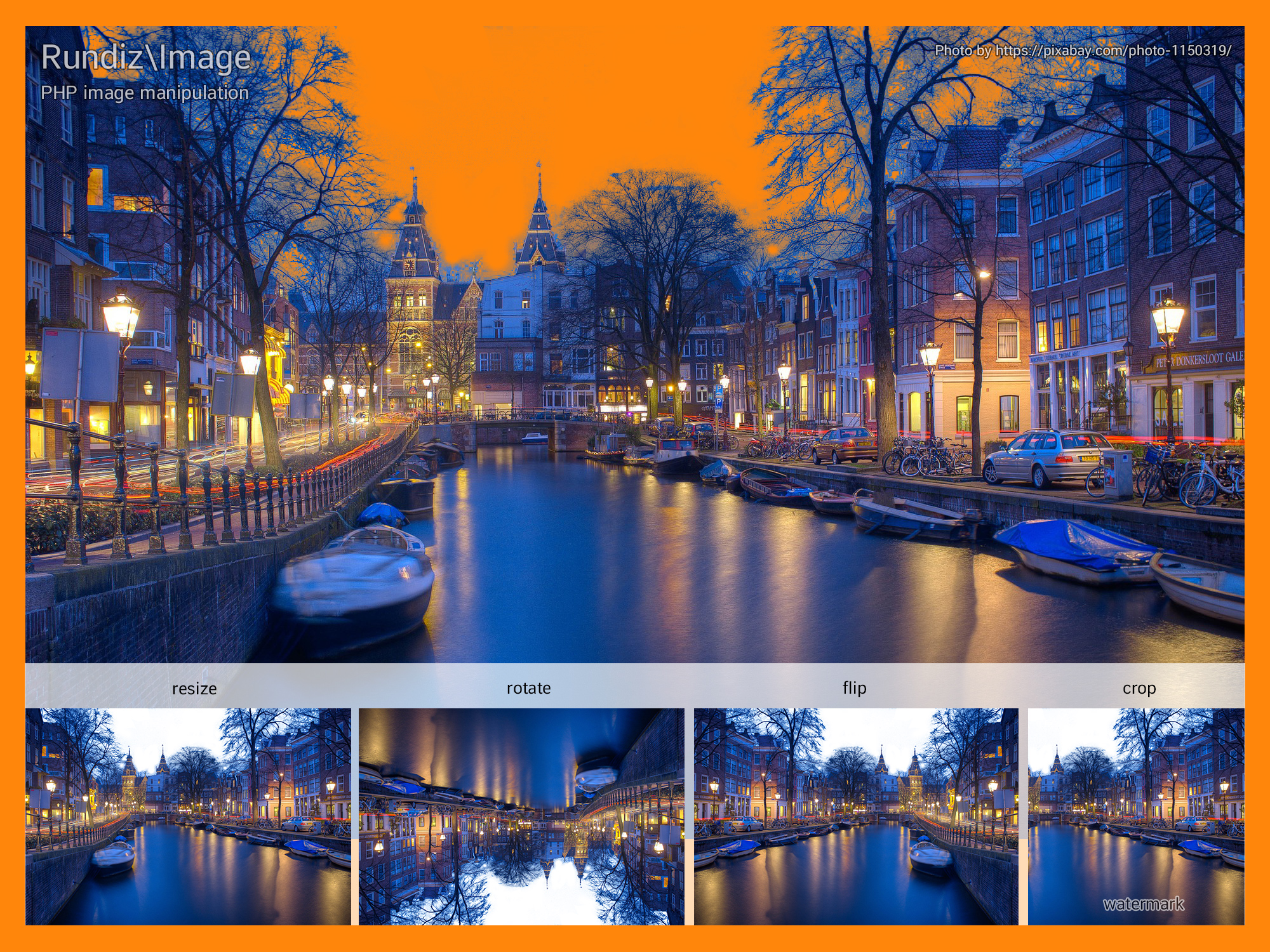 | rotate($degree = 90) | หมุนภาพ โดยค่า $degree จะหมุนทวนเข็มนาฬิกาเสมอ หากต้องการหมุน 90 องศาไปทางขวาตามเข็มนาฬิกาให้ใช้ 270 $degree ค่าองศาในการหมุนภาพ (0, 90, 180, 270) สำหรับผู้ใช้ PHP รุ่น 5.5 หรือใหม่กว่า สามารถใช้การ flip ได้โดยกำหนดเป็น (hor, vrt, horvrt) แต่หากคุณใช้ PHP เก่ากว่า 5.5 แนะนำให้ใช้ Imagick driver ถ้าบน server ของคุณได้ติดตั้งเอาไว้ |